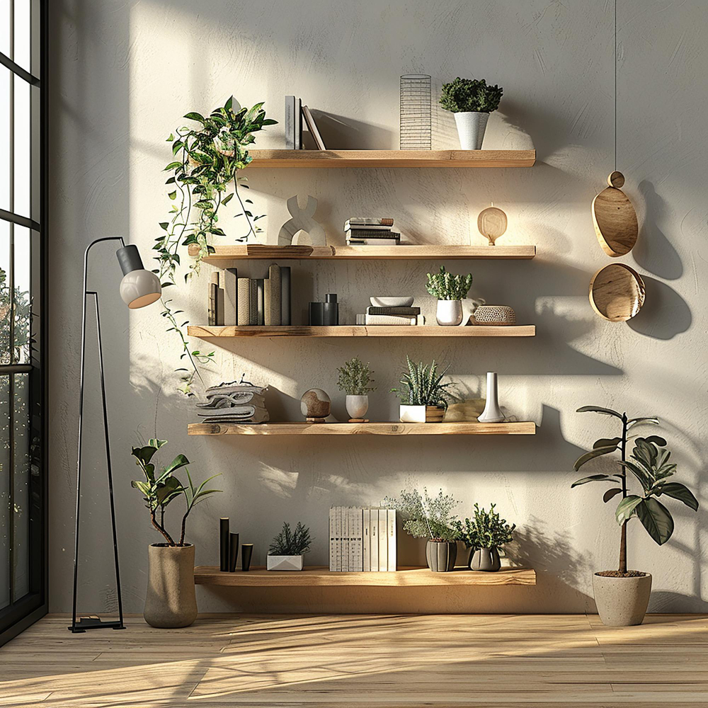 A lebegő polcok modern és légies megoldást nyújtanak, mivel nincs látható alátámasztásuk. A lebegő tévéállványok és komódok szintén ezt a célt szolgálják: a bútor alatt látható padló a tágasság illúzióját kelti. Érdemes a polcokat aszimmetrikusan elhelyezni, hogy dinamikát vigyünk a térbe.